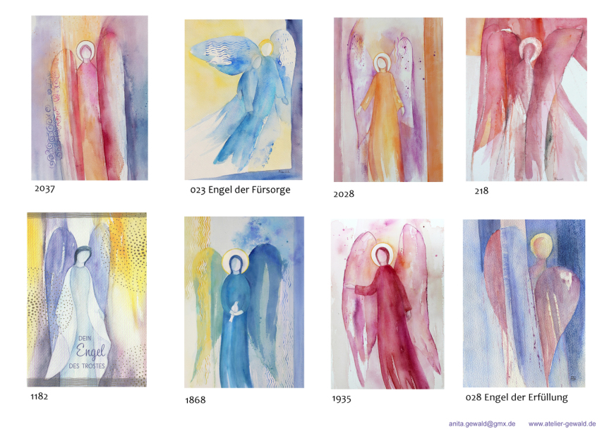 Ich habe sehr viele Engelbilder mit Aquarellfarben gemalt.